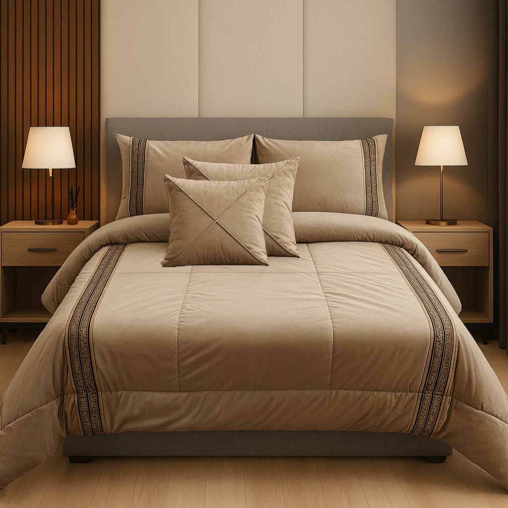 طقم لحاف مزدوج فرو مخمل مع شبر 8 قطع